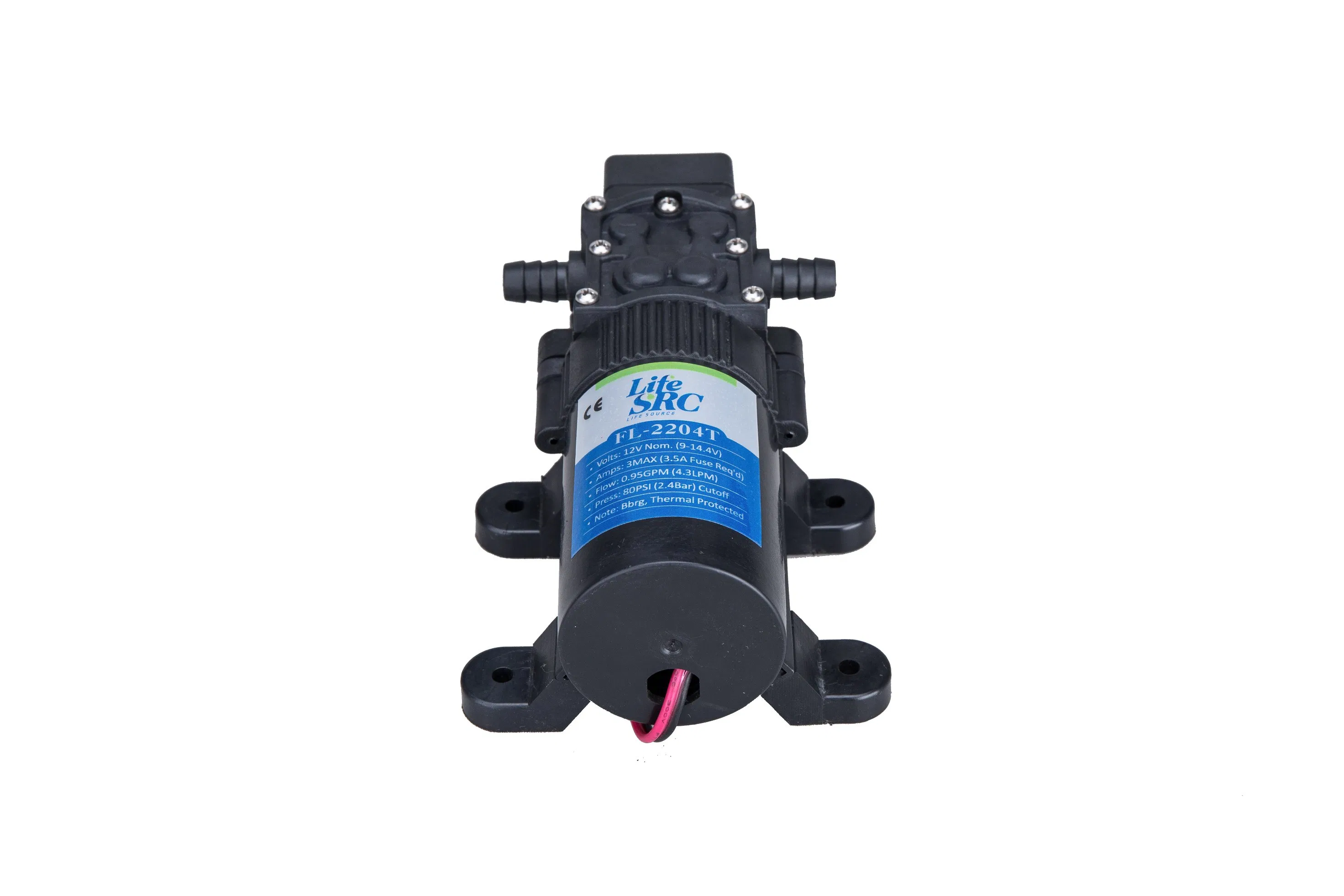 FL Series compact DC diaphragm pumpVoltage: 12VDC, 24VDCFlow rate: 2-4.3L/min / 0.5-1.15GPMUse for: Sprayer, Cleaning, Beverage system, Coffee machine, Drinking machine etc.Valves: VITON/EPDM Different Port:1. 9.5mm x 2 hosebarb 2. 9.5mm hosebarb inlet + 18mm male thread outlet3. Male thread 5/8 in......